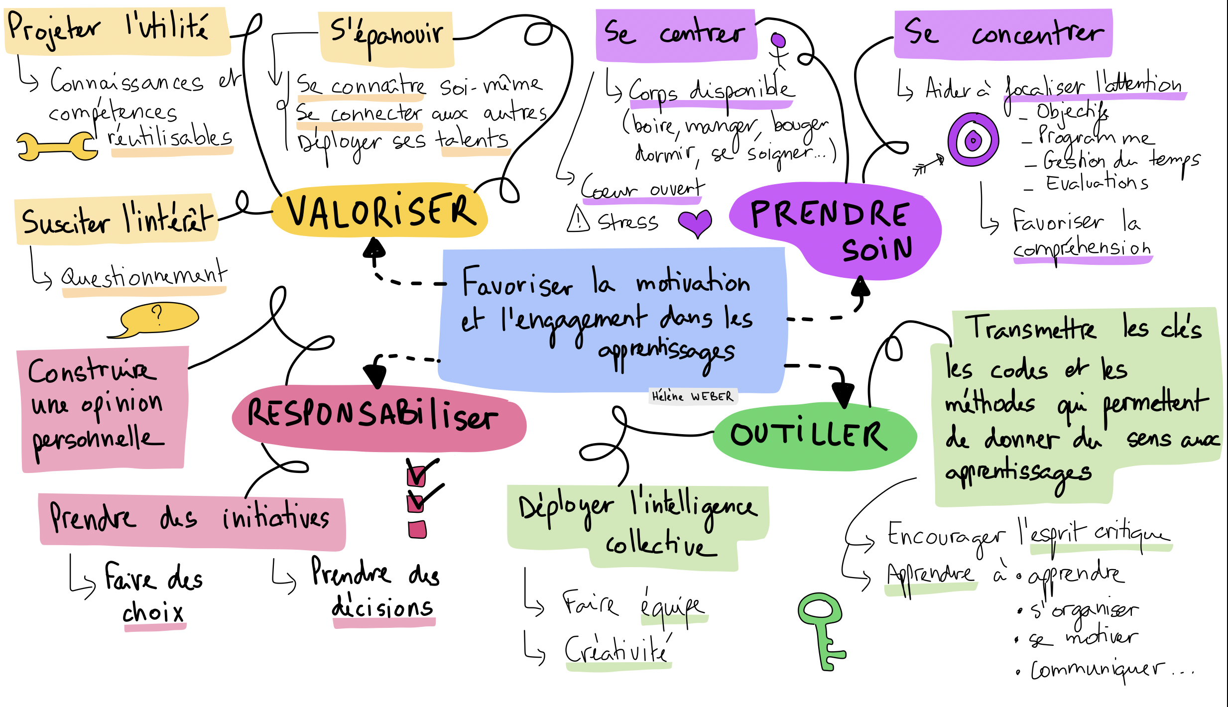 - Transmettre les compétences transversales qui favorisent l’apprentissage (outiller) : apprendre à apprendre, à s’organiser…